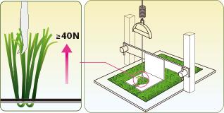 Theo tiêu chuẩn của FIFA, lực rút búi đòi hỏi phải ≥40N ở 70 ℃, và hơn 336 giờ ngâm trong nước. Bellinturf không những đạp mà còn vượt xa các tiêu chuẩn đề ra cho các dòng cỏ thể thao.